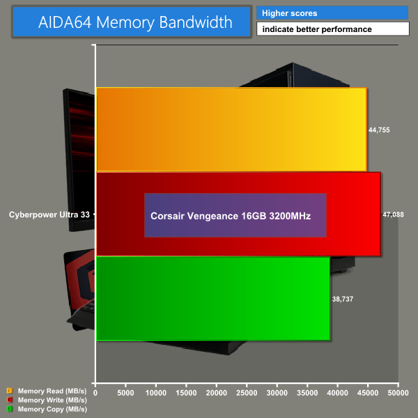 AIDA64 saw our 16GB Corsair RAM score very consistently and highly too with great read, write and copy speeds. Again, it’s great to see 16GB of RAM here at that 3200MHz.