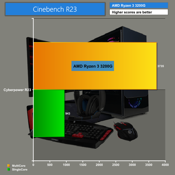 Cinebench R23 saw our Ryzen 3 score a respectable 3735 during multi-core tests and 943 during single core tests.