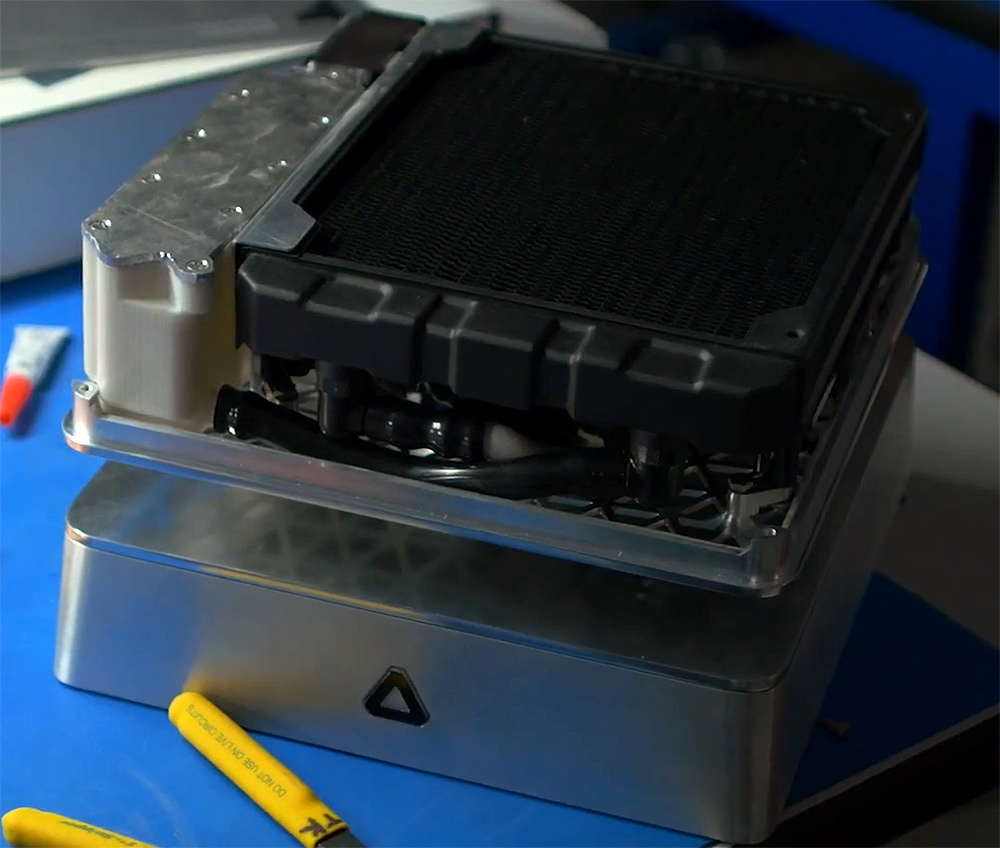 “The uniqueness of Quantum is the fact that it actually has split design, where the bottom side does all the water-cooling of the components and the upside does the cooling of the water itself,” said Ali Merrikh, thermal architect at AMD Innovation Lab.