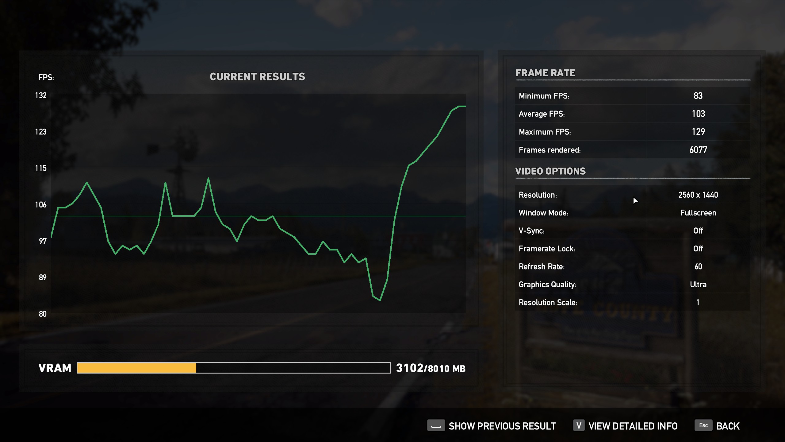 Far Cry 5: was released on March 27, 2018. The gigantic open world of Hope County has plenty of beautiful scenery to test how well this PC performs with a newer game. I tested on the Ultra preset with AA disabled.
