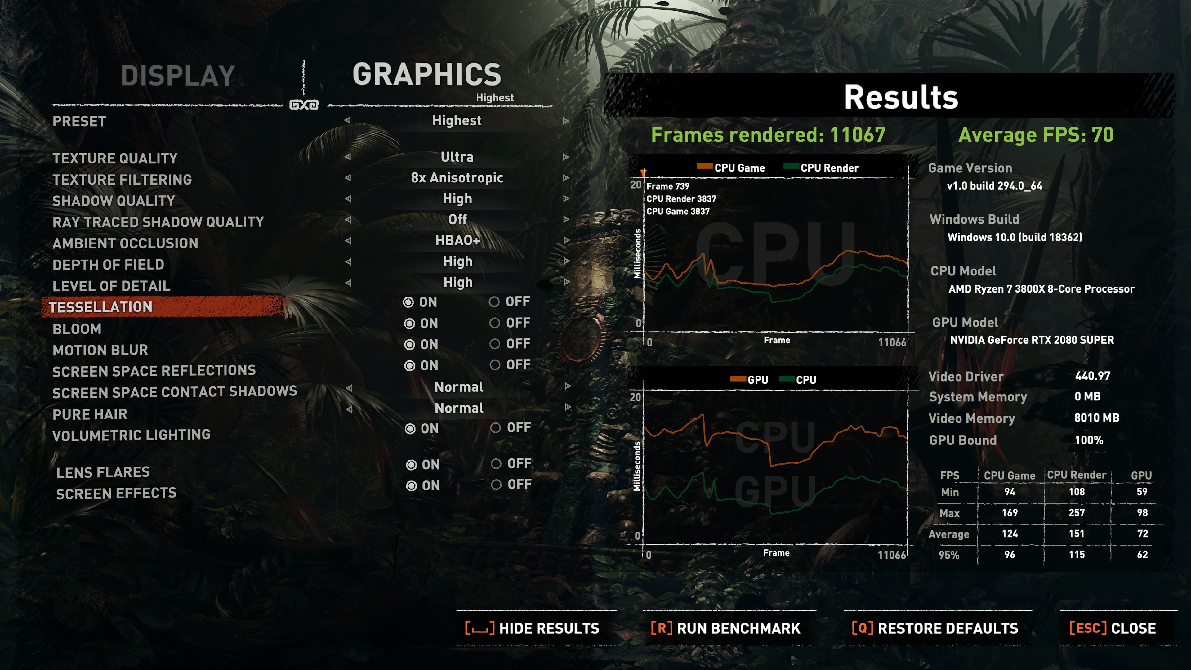 Shadow of the Tomb Raider: is a relatively recent release that supports Nvidia’s RTX technology. I tested the game at Ultra settings with DLSS, DX12 & Ray tracing turned on at various resolutions.