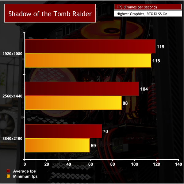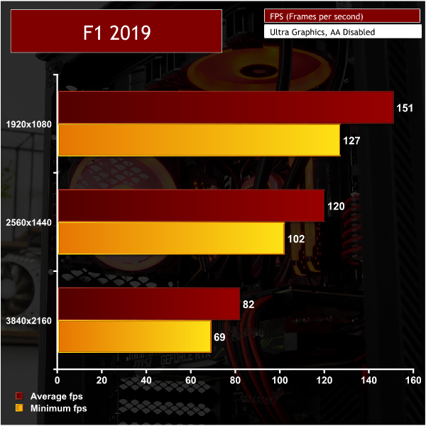 Because the Dragon Army One is such a high end PC I didn't want to mess around with lower graphical settings and instead opted to switch up the resolutions to provide results for different gaming monitor preferences. This PC can easily run all of the tester games on Ultra settings without skipping a beat, which is great for jaw dropping visuals, but thankfully I didn't see too much of a hit to framerates either.