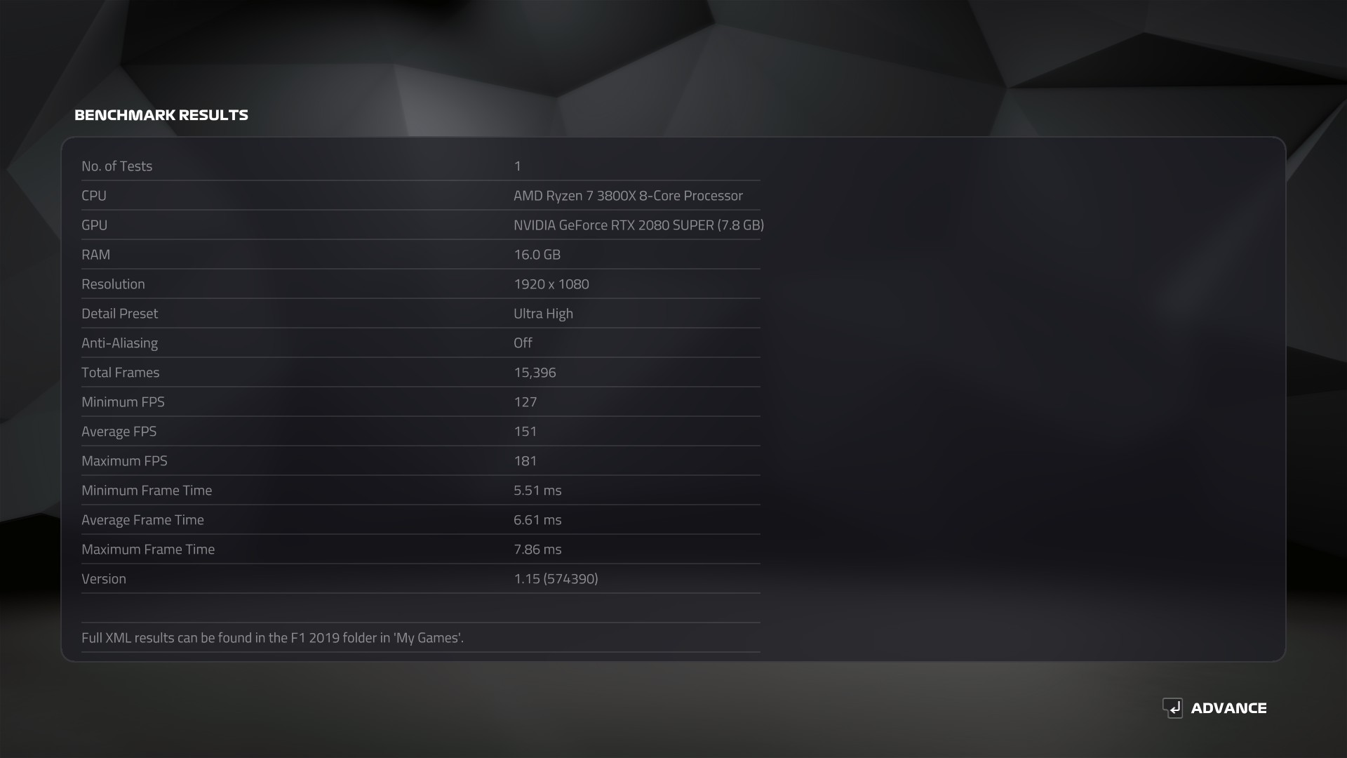 F1 2019: This is the most recent release in my line up of tester games and gives the Dragon Army One a chance to show what it can do on a newer title.