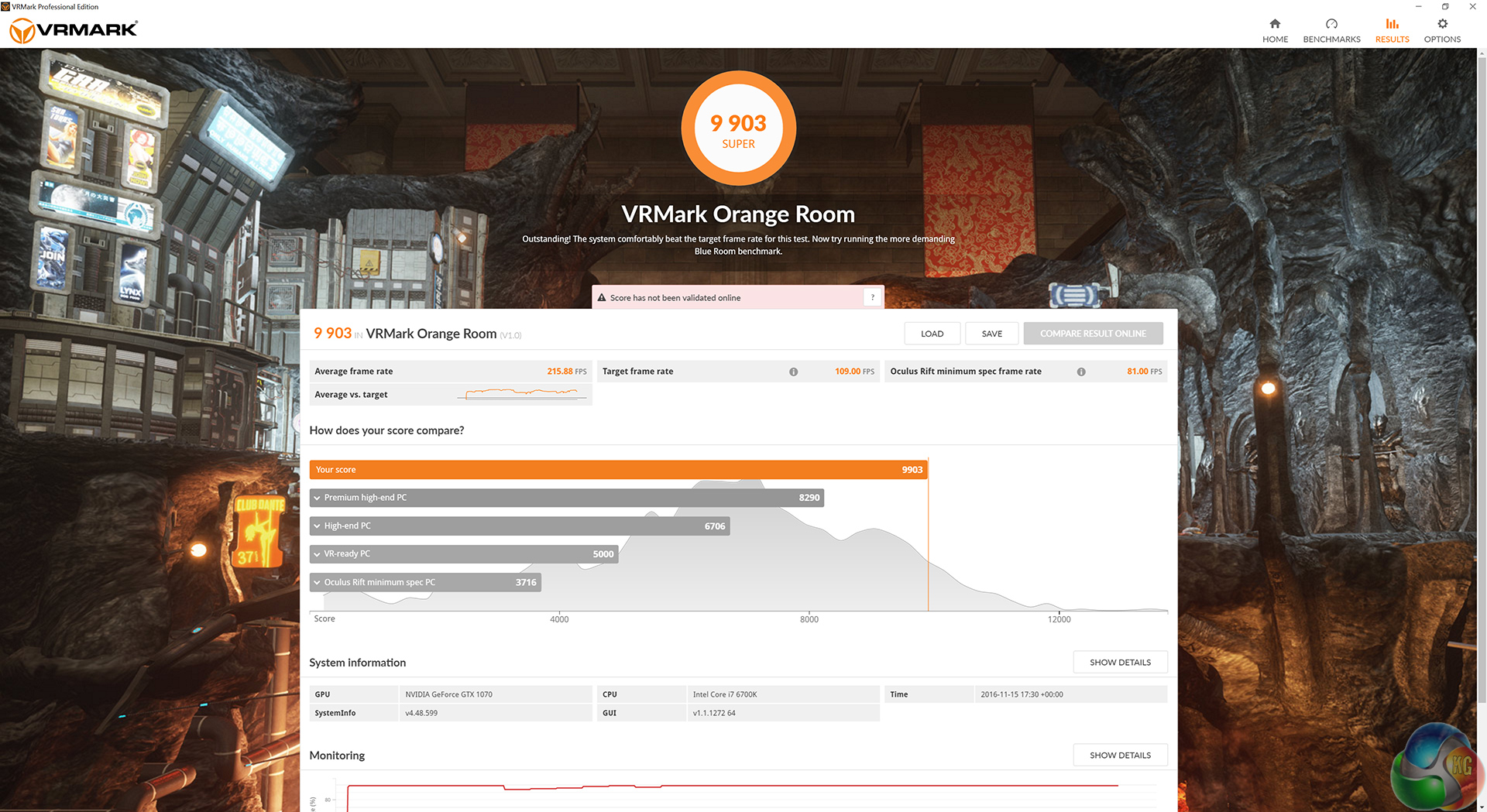 As this is the first time I have used VRMark – it has only just been released – I have no comparison data, though you can download the basic edition for free HERE and see how your rig compares.