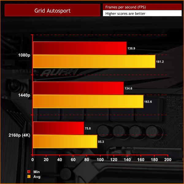 Though it is now getting on in age, I still include Grid Autosport in my benchmark suite as it is a good indication of how well a system performs using a less demanding game engine.
