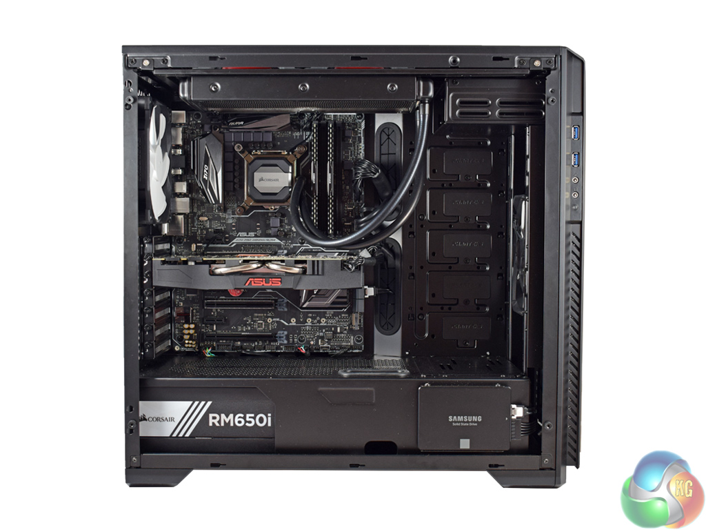 The i7-6700K is cooled by a Corsair H100i all-in-one – although this is an OEM version for system builders, which does not look quite as swanky as the retail version.