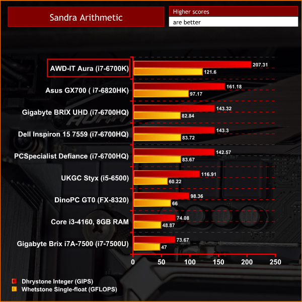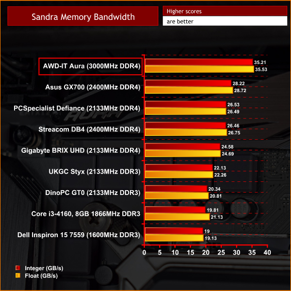 The AWD-IT Aura gets off to a very good start thanks to strong CPU and memory performance. In both tests, the Aura goes straight to the top of the charts – thanks to the solid 4.5GHz CPU overclock, as well as the fast 3000MHz memory used.