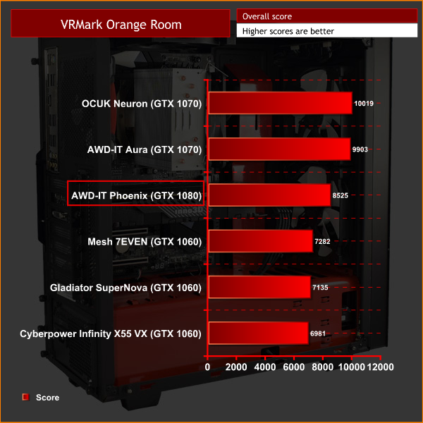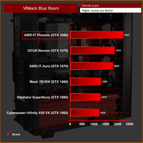 Interestingly, the Phoenix struggles with the Orange Room, proving unable to beat the two GTX 1070-based systems I have compared it to. This is likely because of the stock-clocked 1700X – both of the faster GTX 1070 systems featured overclocked CPUs which would have helped significantly.