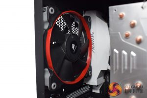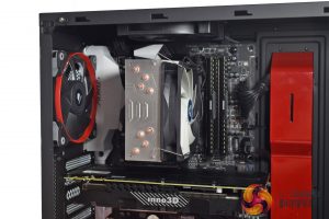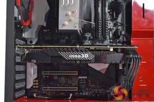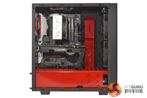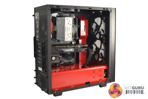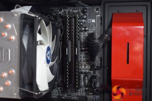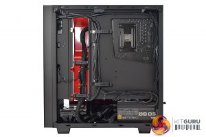 Other than the glossy red accents that come from the case, the first thing to note is that the system is nice and tidy, with no exposed cabling or anything like that. The interior also benefits from the use of all-black cables – none of that ugly ketchup-and-mustard cabling here.