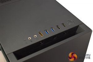 Before diving into the innards of the system, it is worth looking at the front-panel I/O. Here we find 2x USB 3.0, 2x USB 2.0, audio jacks and an HDMI pass-through port (great for VR users), so definitely a full set of connectivity options.