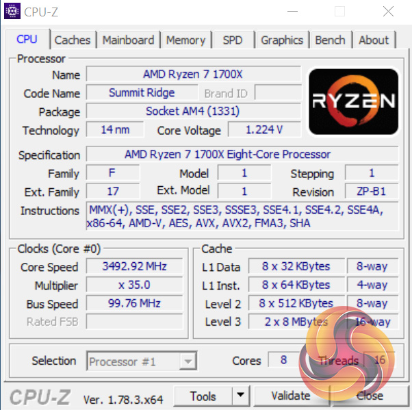 The Ryzen 7 1700X is a octa-core chip that supports SMT, giving it a total of 16 threads. AWD-IT have left it at stock clocks, with a 3.4GHz base clock, while it boosts to 3.8GHz. Using XFR, it may boost higher, but only if there is sufficient thermal headroom.