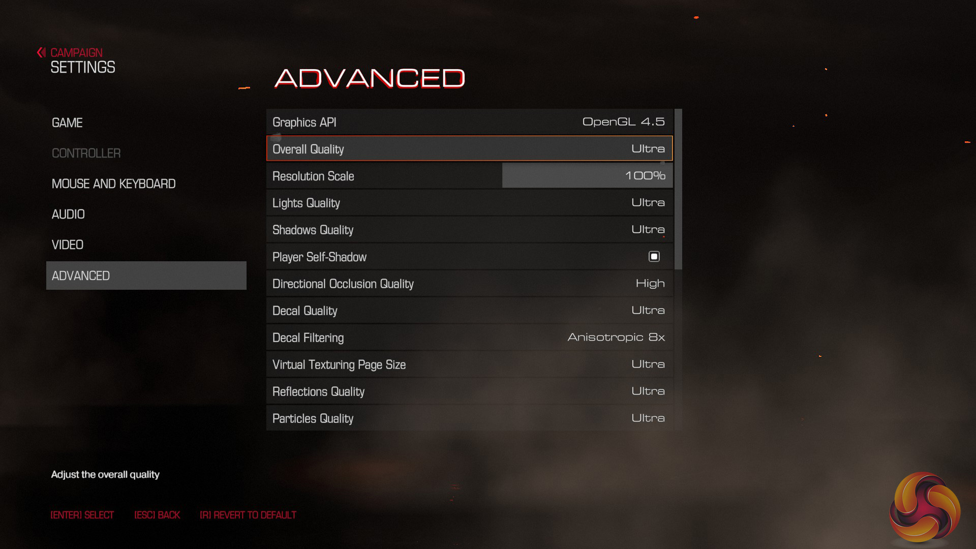 We test using the ‘ultra’ preset. Given Doom does not have its own in-built benchmark, I tested at the beginning of the game as the player destroys the very first Gore Nest. I benchmarked 3 closely-matched runs and then took the average figures from those runs to present here.