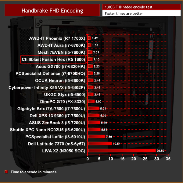 Interestingly, the Fusion Hex is slightly off the pace when it comes to my Handbrake video encoding test, and I would stay this is mostly likely because the chip has been left at stock clocks. It is by no means slow, though.