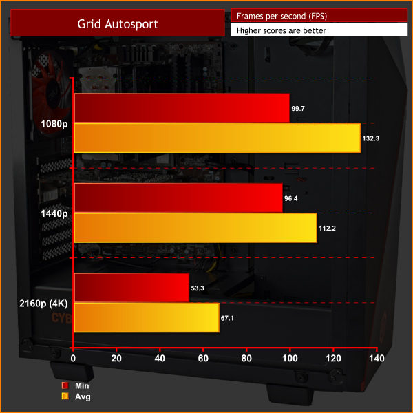 Though it is now getting on in age, I still include Grid Autosport in my benchmark suite as it is a good indication of how well a system performs using a less demanding game engine.