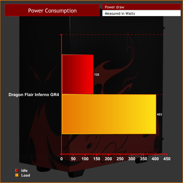For ‘idle’ power draw, a reading was taken after having Windows open on the desktop for 30 minutes. A reading under load was taken with Prime 95’s SmallFFt test running alongside 3DMark Fire Strike.