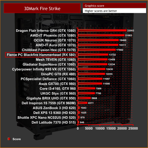 The RX 580 also does very well in Fire Strike, again proving faster than all of the GTX 1060-based systems I have seen to-date.