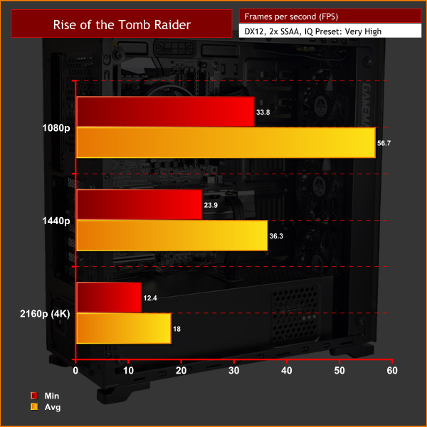Only 1080p performance is comfortably smooth here, though a few IQ tweaks would easily bump-up the 1440p frame rates. 4K is simply not playable.