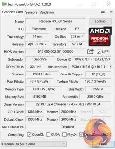 The Sapphire Pulse RX 580 is the 8GB model, and its core is also factory-overclocked to 1366MHz boost. We will have a stand-alone review of this card published soon.