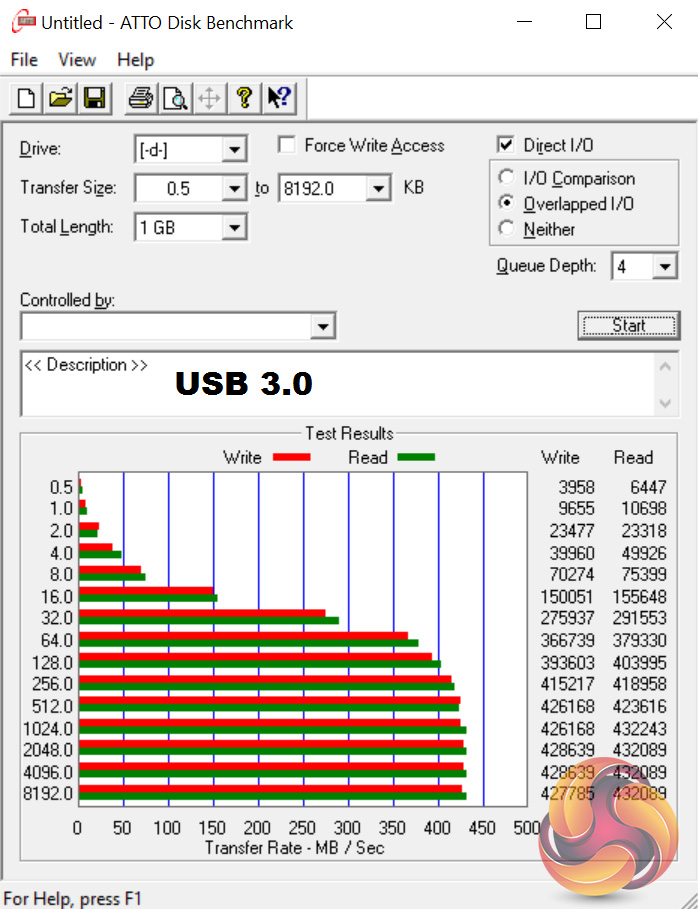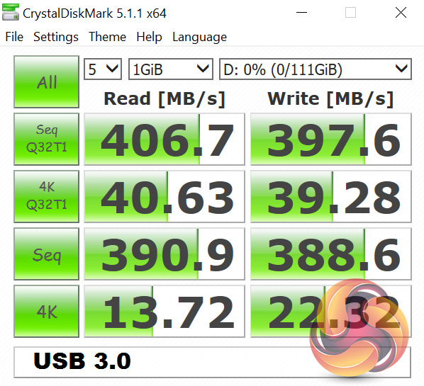 As expected, speeds of around 400 MB/s indicate no issues with the USB 3.0 ports.
