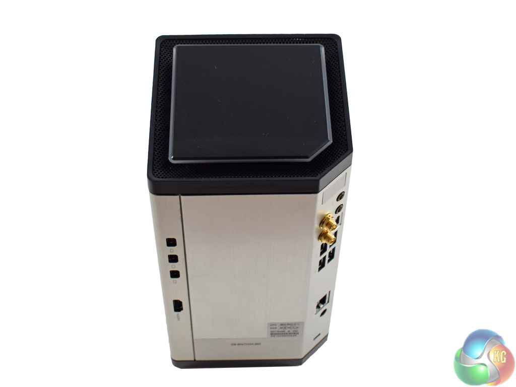 By now you are probably thinking, ‘well how does that stay cool?'. And the answer is simple, if not immediately obvious. A single fan is positioned at the bottom of the chassis, and it draws air through a mesh panel. That air then exhausts through the top of the device (pictured on the right), which also has a meshed section.