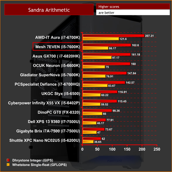 Thanks to the strong 4.7GHz overclock on the CPU, the i5-7600K moves into second-place in the CPU arithmetic test.