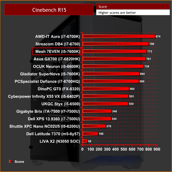 As a general rule, Cinebench favours more cores and threads over clockspeed (though clockspeed still plays a significant role), which is why the overclocked i5-7600K can't quite match the i7-6700 or the i7-6700K. It does take a lead over the i5-6600K, though, thanks to its bigger overclock.