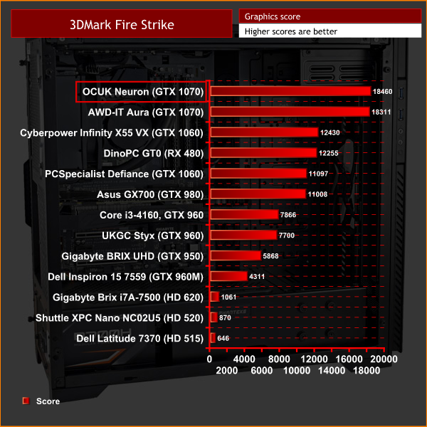 Here, the gap between the two GTX 1070s is even smaller. However, the G1 Gaming card in the Neuron just nudges ahead.