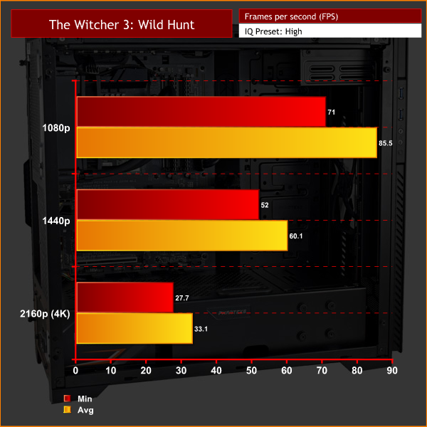 The Witcher 3 is a very demanding title, so to see the great frame rates scored by the Neuron at 1080p and 1440p resolutions is heartening. It is clear, though, that the GTX 1070 is not quite up to the task at 4K.