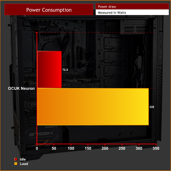 For ‘idle' power draw, a reading was taken after having Windows open on the desktop for 30 minutes. A reading under load was taken with Prime 95's SmallFFt test running alongside 3DMark Fire Strike.