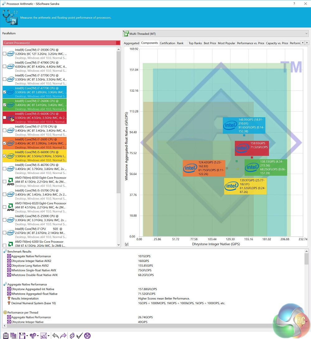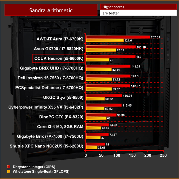 A good start for the Neuron – both scores are towards the top of their respective chart. In the Arithmetic test, the solid overclock helps the i5-6600K, while the memory bandwidth results are high thanks to the 3000MHz RAM used.