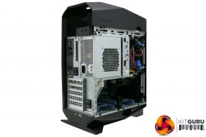 Alienware isn’t known for making PCs that are easy to get inside and upgrade, but this machine makes access fairly easy, despite its compact size.