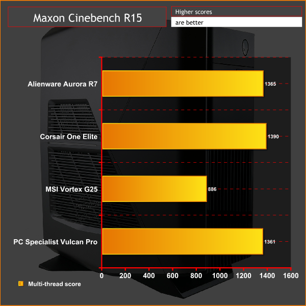 It's clear to see that the Intel Core i7-8700 used here is more than capable of keeping up with the big boys, with the Corsair One Elite's 8700K delivering a mere 2% more performance. The single-core score of 194 is also very nippy, and really highlights just how good Intel's boost clock performance is for single-core use.