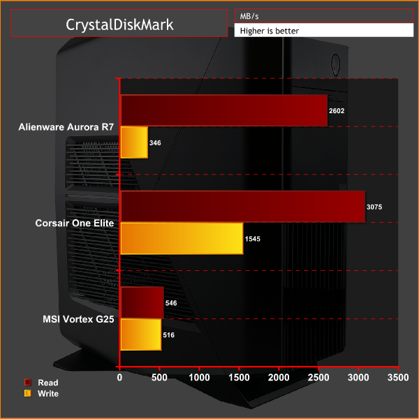 Meanwhile, the secondary hard drive (D:) provides fairly typical hard drive performance. It's just there for seldom-accessed bulk data and it gets the job done.