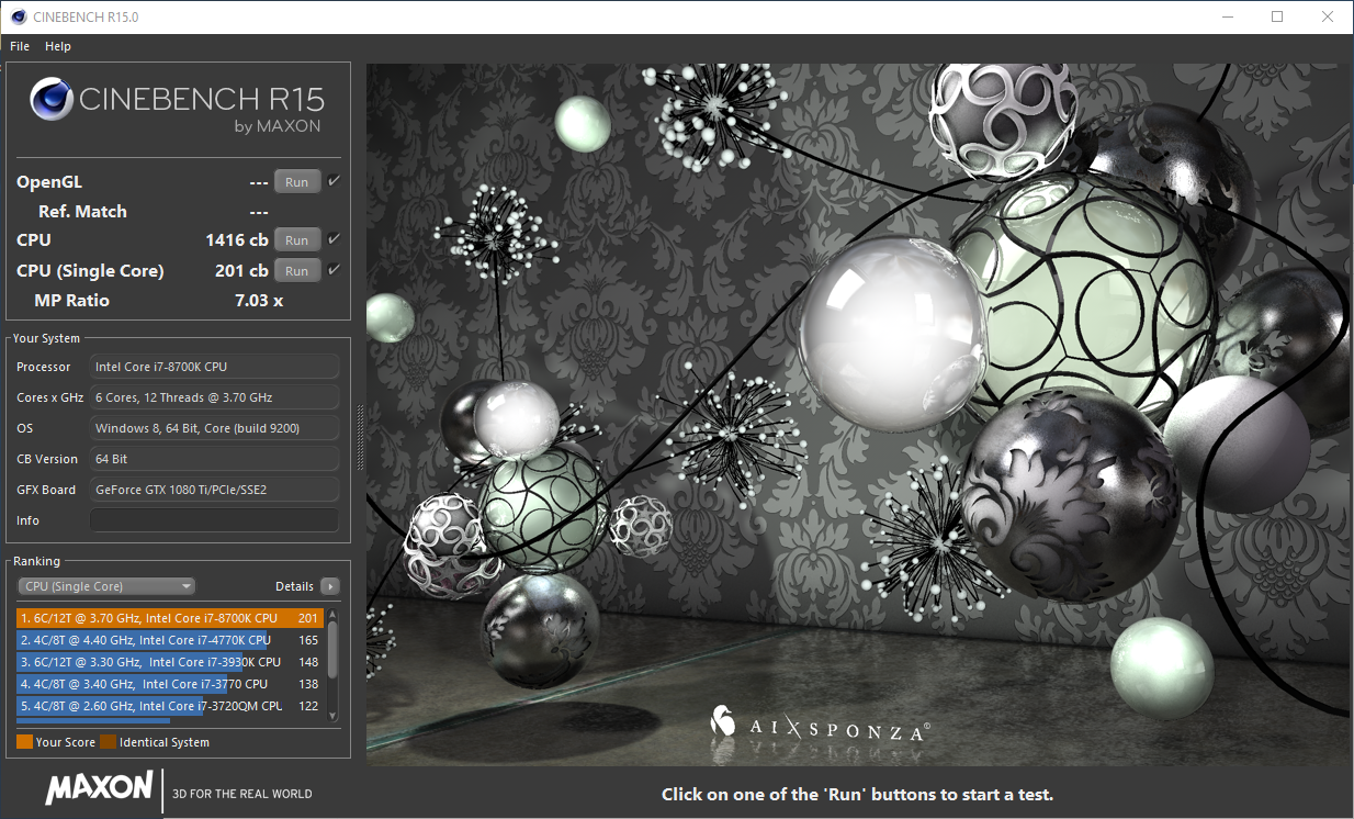 CINEBENCH R15 is a cross-platform testing suite that measures hardware performance and is the de facto standard benchmarking tool for leading companies and trade journals for conducting real-world hardware performance tests. With the new Release 15, systems with up to 256 threads can be tested.
