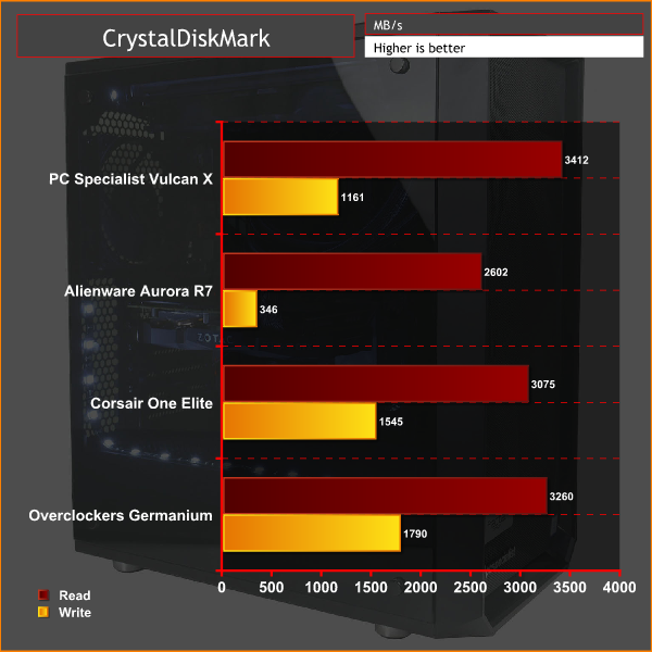 The PM961 is essentially the OEM version of the Samsung 960 EVO, and sure enough its performance in our tests was impressive. It even pulled ahead of the Overclockers UK Germanium for sequential read speed, though it fell behind for write speed.