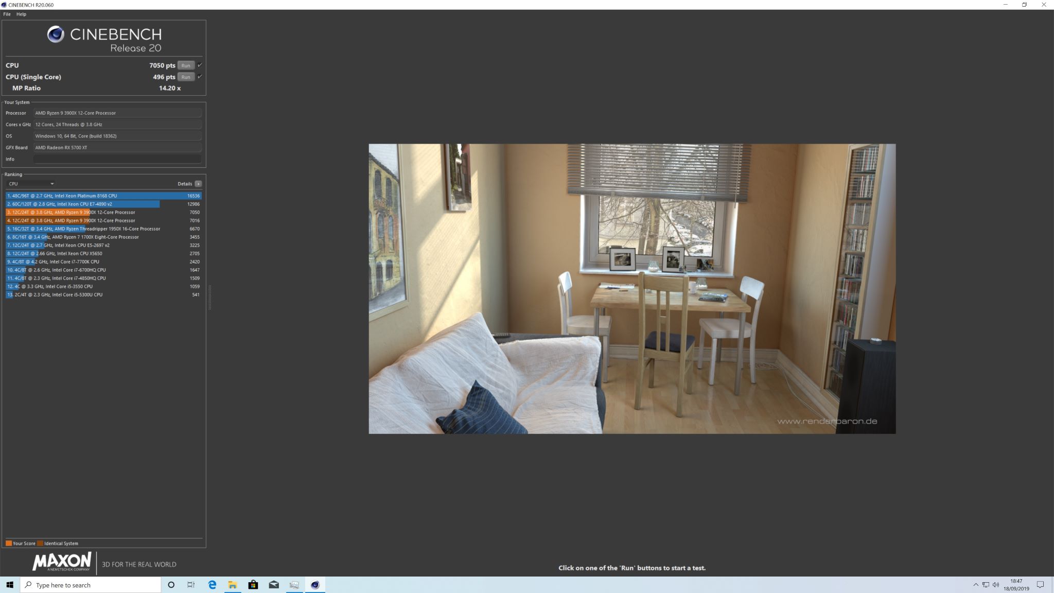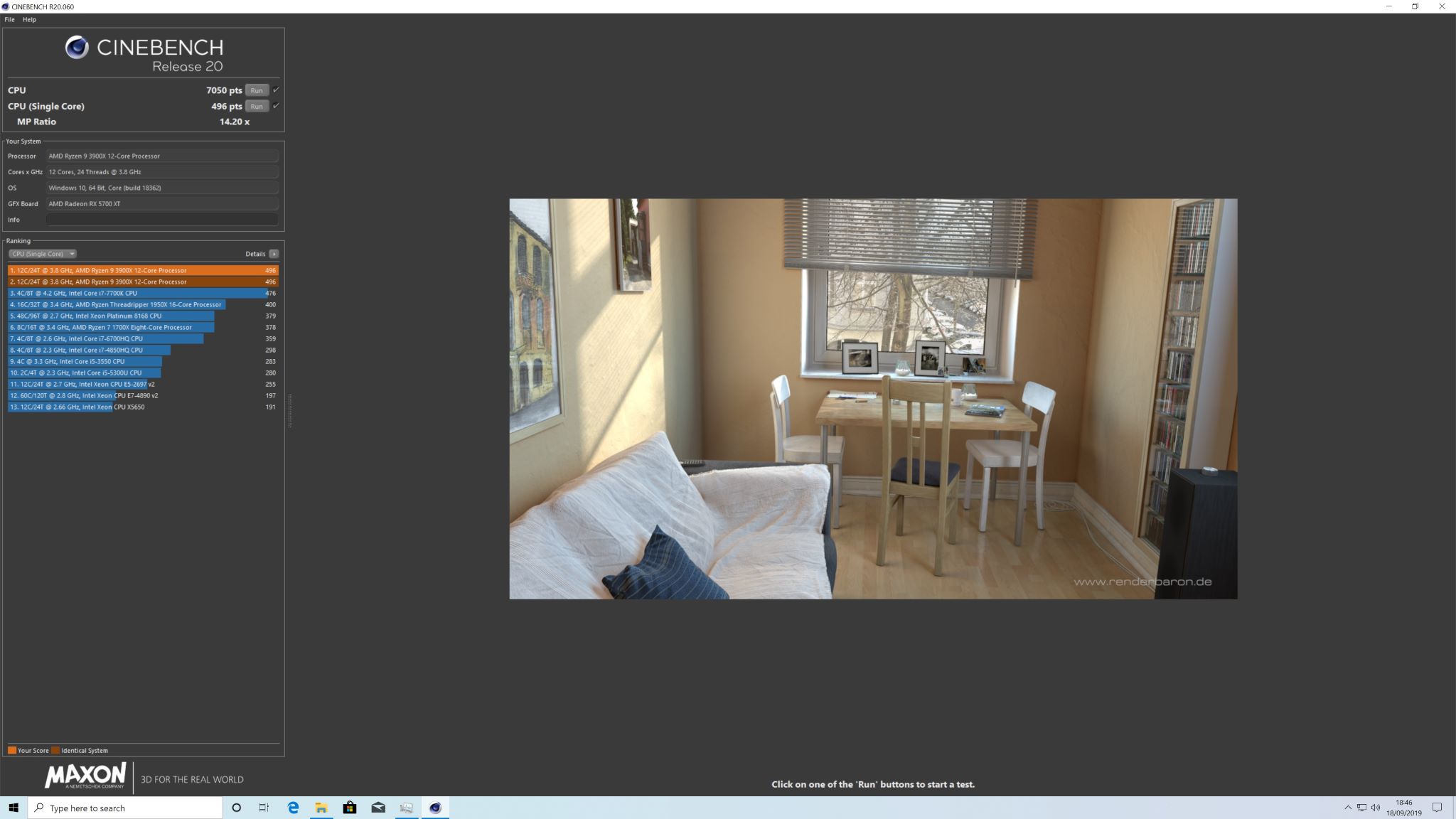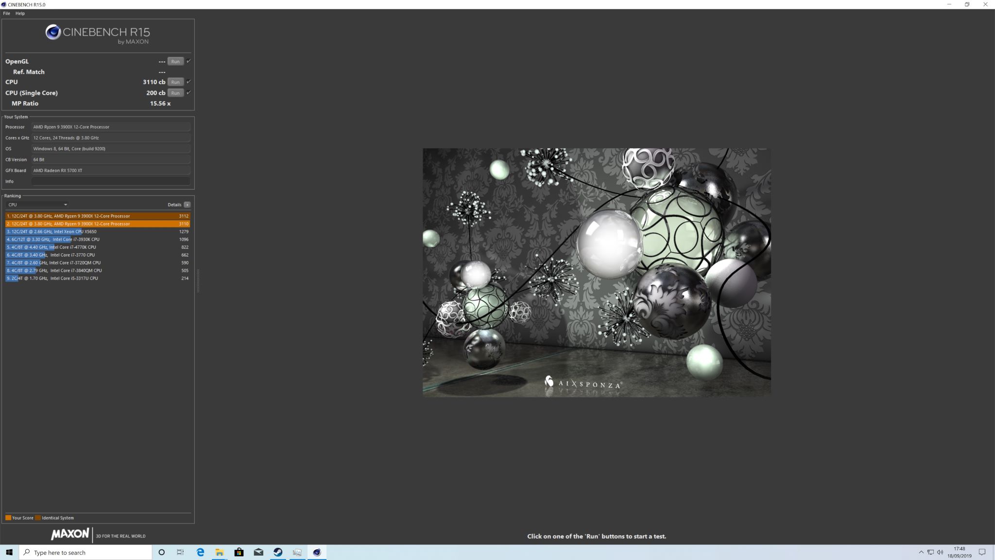 Since the Cyberpower Hydro-X system is equipped with the latest Ryzen 3900X, an ideal CPU for productivity tasks, we will run a series of tests on both Cinebench R15 and R20 and compile a chart below to compare the results.