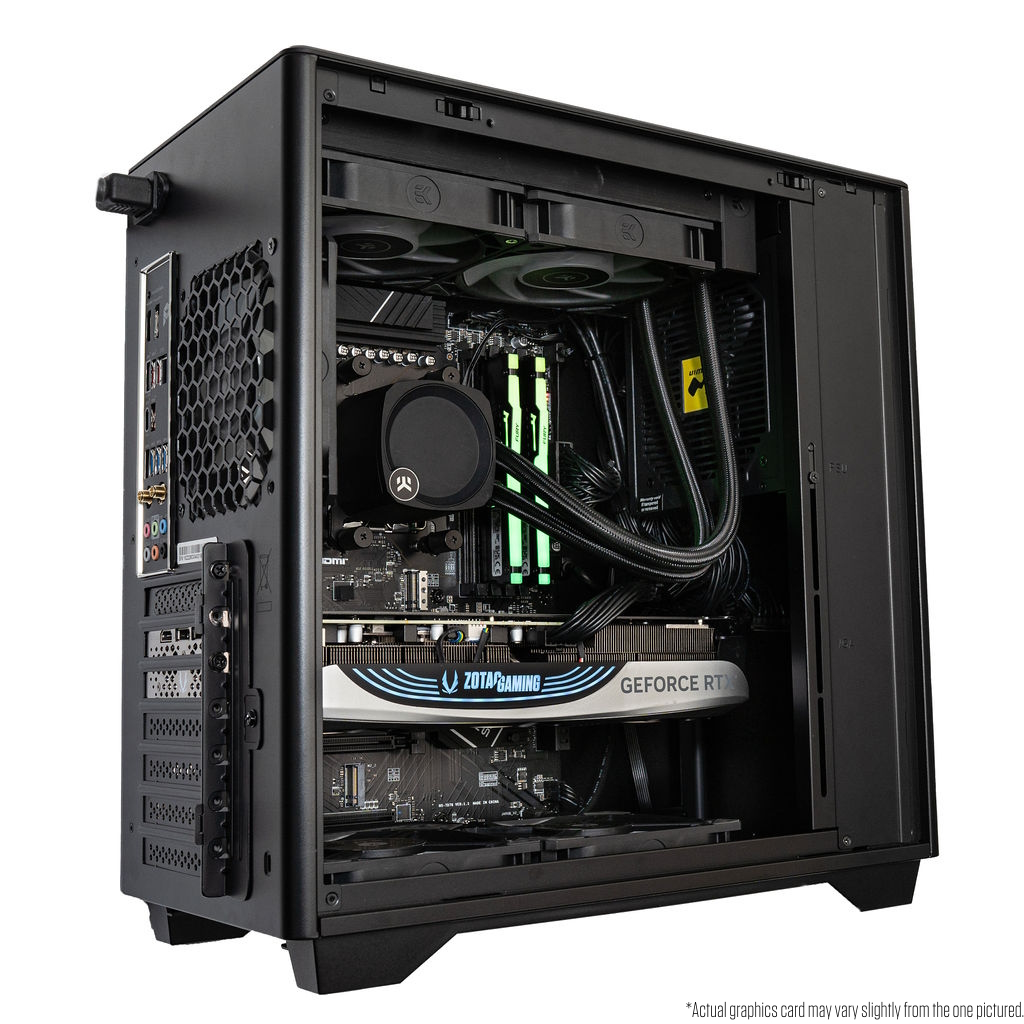 The last is the MEK Hero A7748S, featuring a Zotac RTX 4080 Super Trinity Black Edition graphics card. Unlike the other two systems, this one packs an AMD Ryzen 7 7700X cooled by a 240mm AIO liquid cooler (the others use a standard air cooler with one fan). Together, this combo should allow you to play any AAA game for the foreseeable future at 4K.