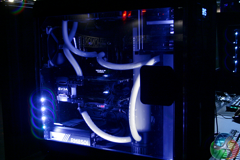 And it is very likely to, since the full systems these two companies had on display were very impressive. The mixture of coloured water cooling liquid with unique LED placements and configurations has a dramatic effect on how cool the systems look. The straight-lined water cooling loops go a long way there too. It's something about the neatness of the lines.