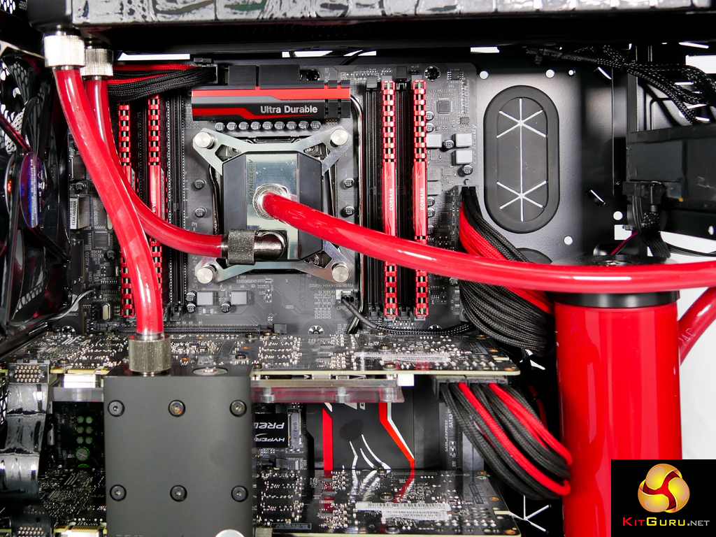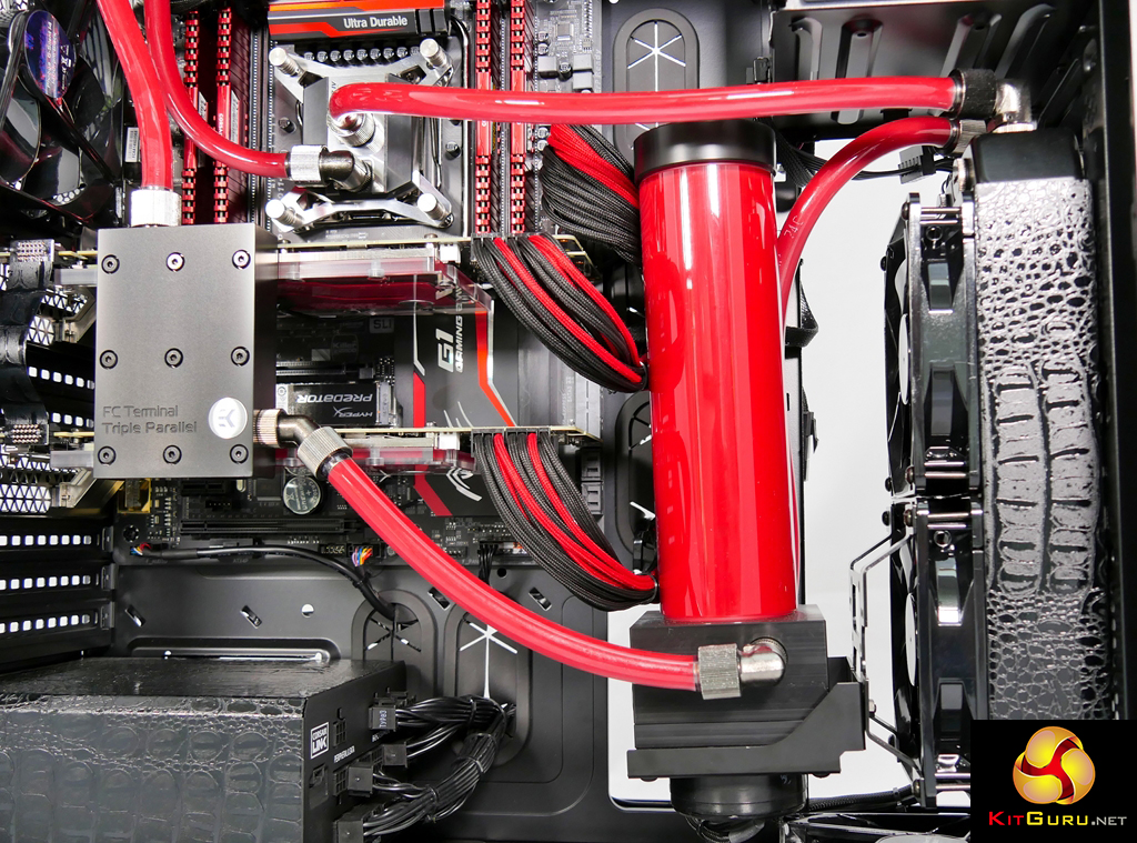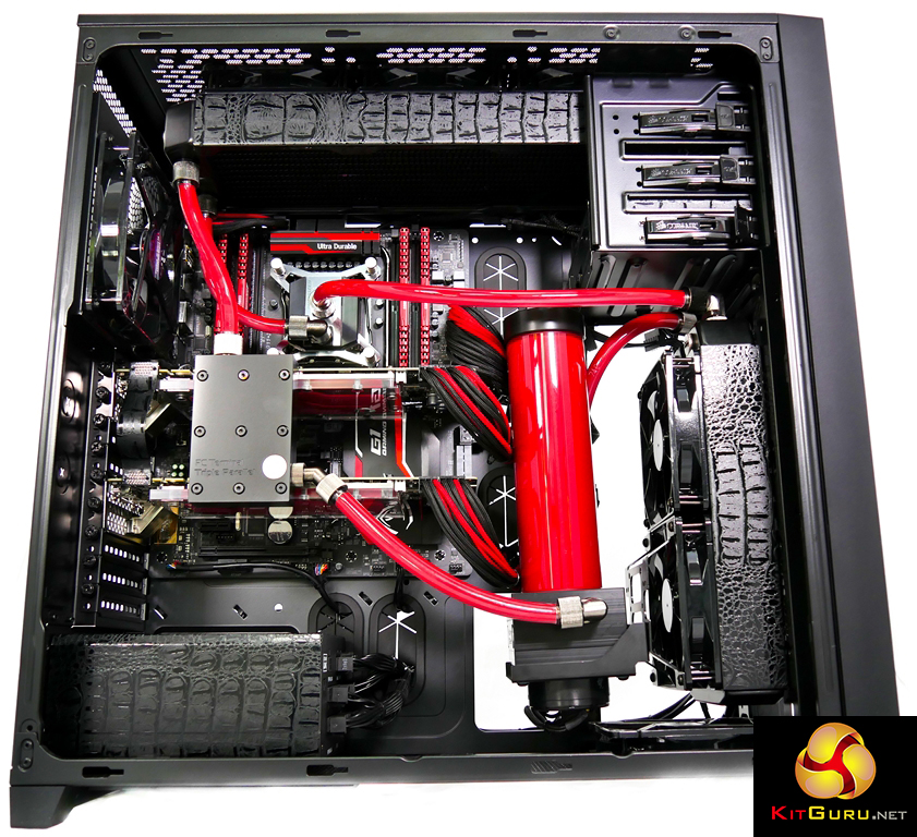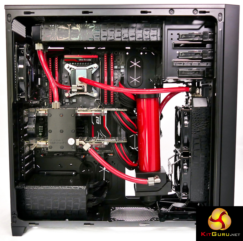 The only questionable aspect of the cooling system is the way the pump/reservoir is mounted on a bracket that is attached to one of the fans on the front radiator. It's a set-up that hangs a fair amount of weight from the bracket without a secondary support and the result is a reservoir that isn't quite vertical. It is a minor point but nonetheless it is annoying as the system is effective and looks really good in every other respect.