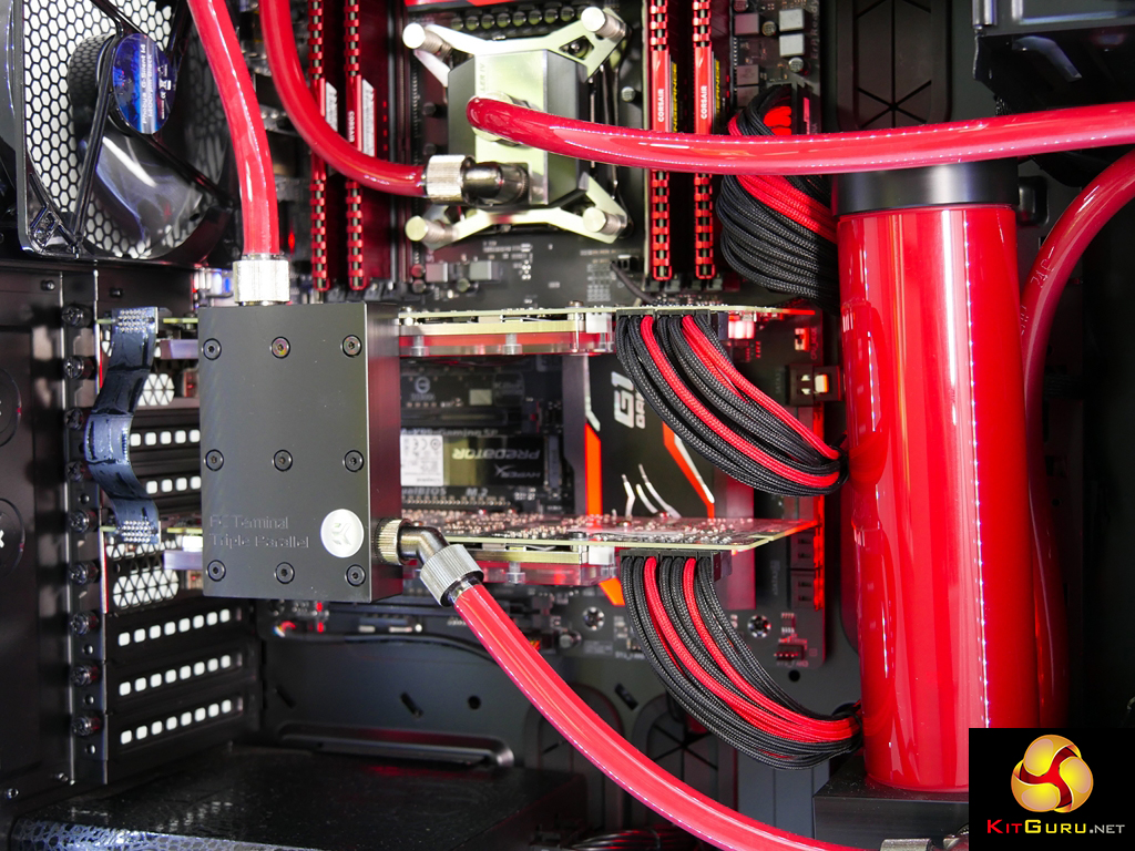 - Watercooling blocks and bridge: Heat Killer IV CPU water block, EK 980Ti full cover blocks, EK Parallel multi GPU bridge