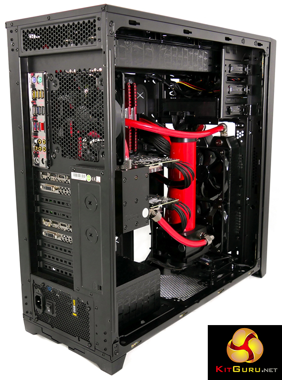 You might expect the system to get toasty warm, and that brings us to the most visually striking feature of this PC which is the extensive custom liquid cooling system.