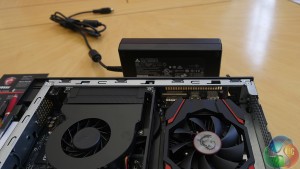 Internally the chassis is divided in two to keep the heat from the CPU and GPU separate. We like the way MSI has powered the Trident with an external power adapter as it saves space and eliminates noise. The system shouldn't consume an inordinate amount of power given its use of a 230W adapter.
