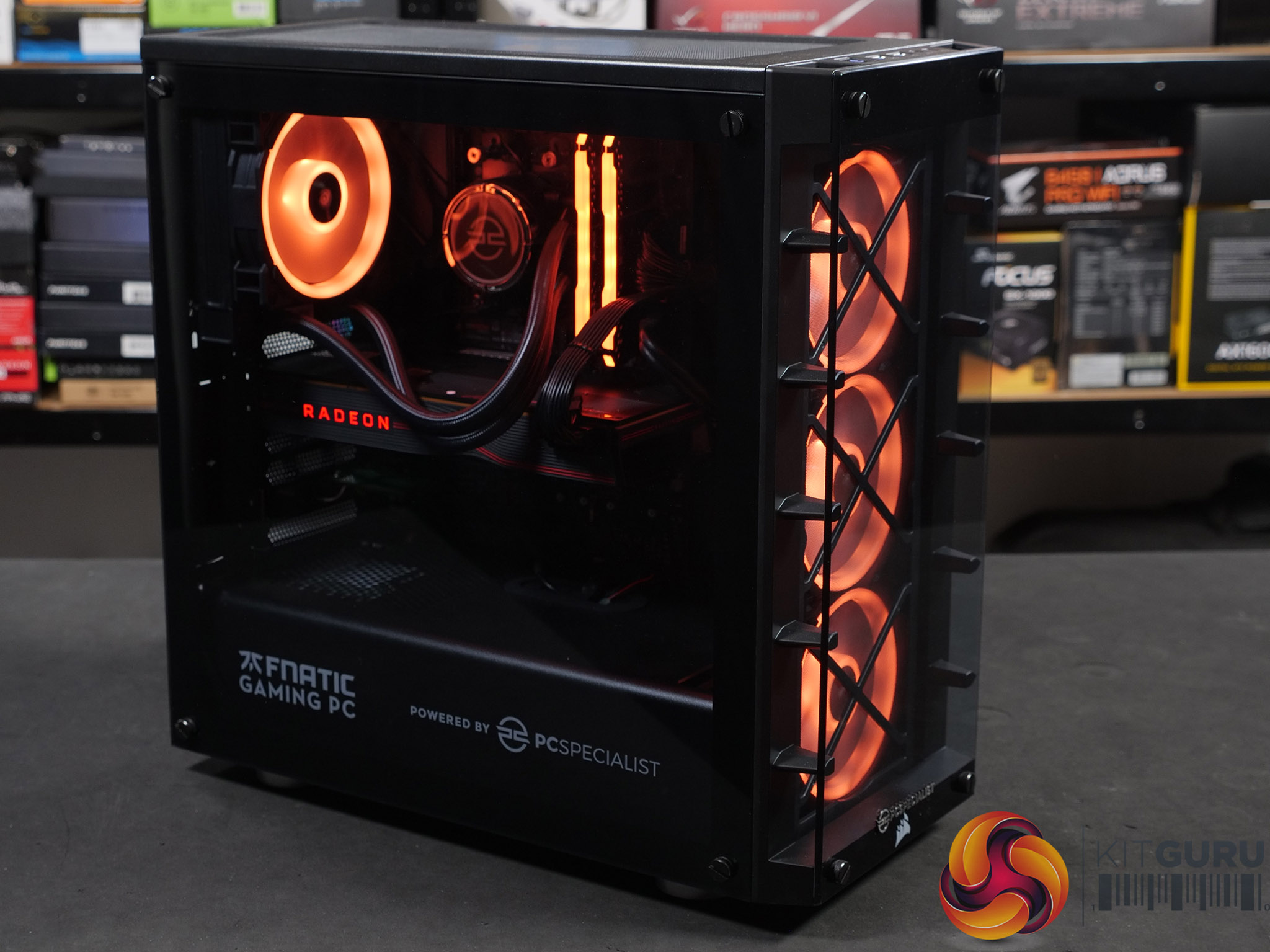 After we had unpacked the PC Specialist Fnatic PC we checked out the features and found the quality was pleasingly high. Every part is a properly branded component with the case, DDR4 memory and power supply coming from Corsair, the motherboard from Asus and the SSD from Samsung. We had a few question marks over the 120mm All In One CPU cooler, the reference AMD RX 5700 XT graphics card and the fact the Asus motherboards uses a B450 chipset.