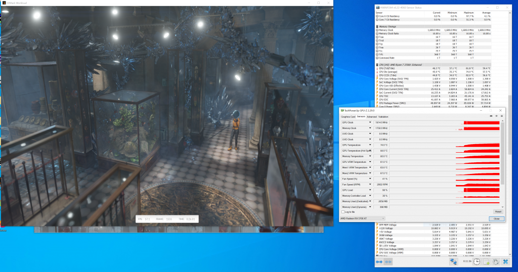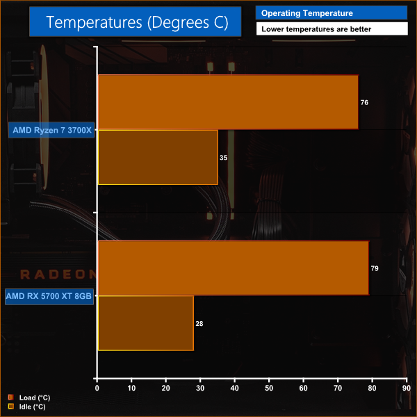 The reference RX 5700 XT graphics card hit a temperature of 74 degrees in Time Spy and 79 degrees in AIDA64 which is acceptable, however we can expect temperatures around ten degrees cooler when the graphics card is made by a company such as Sapphire. This would be a significant upgrade by PC Specialist and we urge them to make the change.