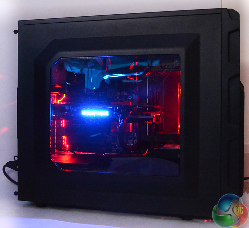The large side-panel window gives a look inside at the gaming hardware being utilised. Light from the red LED system seeps through the window to create an eye-catching, gaming-orientated glow.