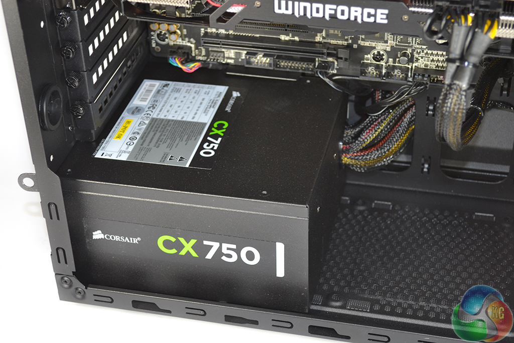 But a 750W non-modular PSU inside the Corsair SPEC-03 chassis seems like a questionable decision. Corsair's own semi-modular CX750M unit retails for about £5-10 more than the non-modular CX750, and should have been chosen. As we will see later, finding places inside the SPEC-03 chassis to hide the plethora of unused cables is a difficult task.