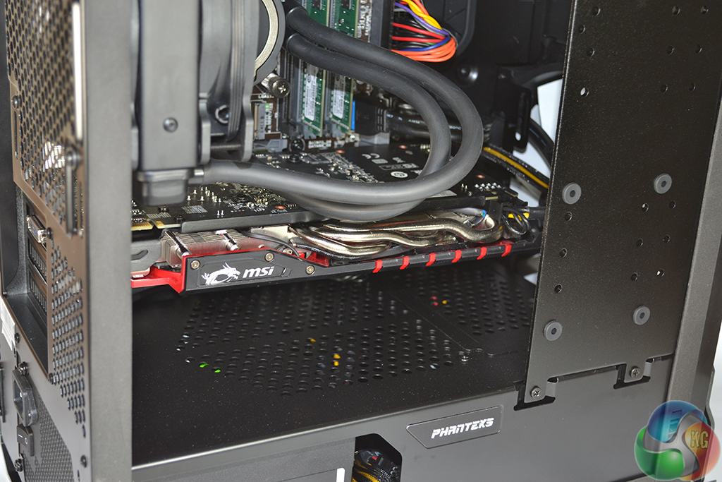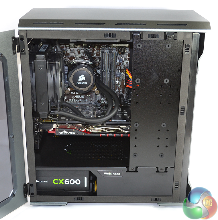 Opening the side panel door gives access to the motherboard area. If you plan on removing the graphics card for any reason, a vertical section of the Phanteks chassis will have to be removed (which is simple) to gain access.
