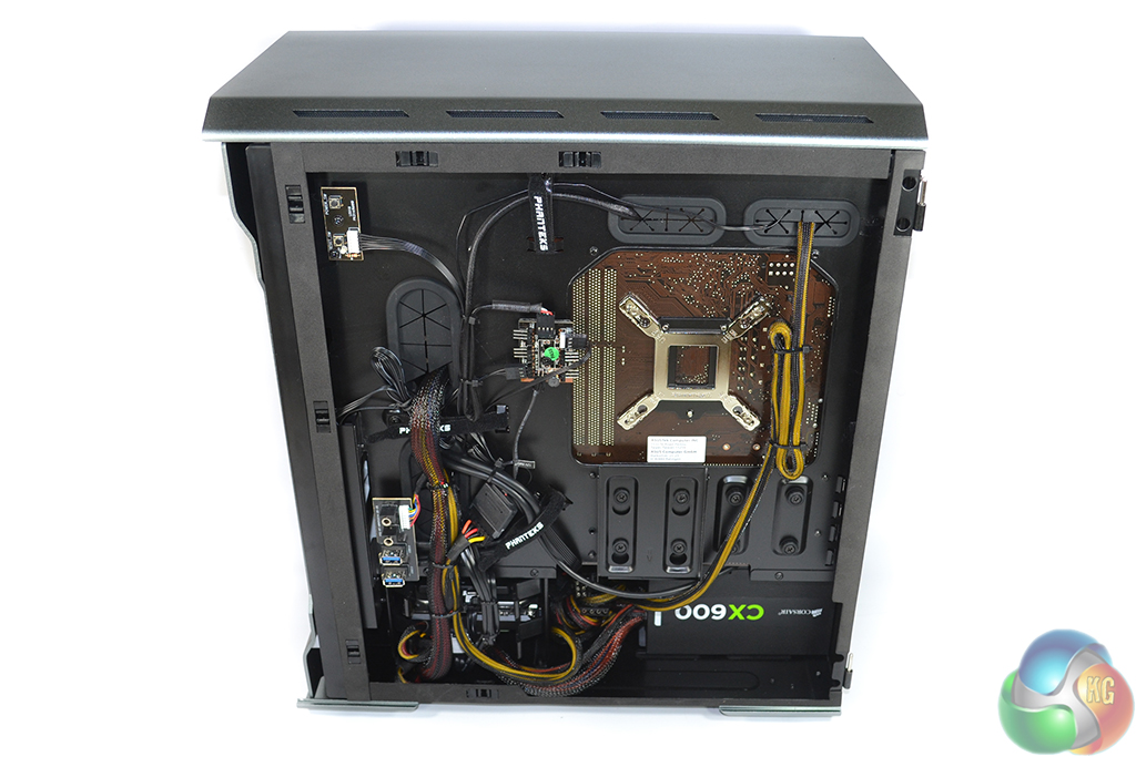 A number of zip-ties are used to maintain order behind the case's motherboard tray. Both Phanteks chassis fans are controlled via the case's supplied fan-control hub.