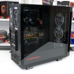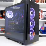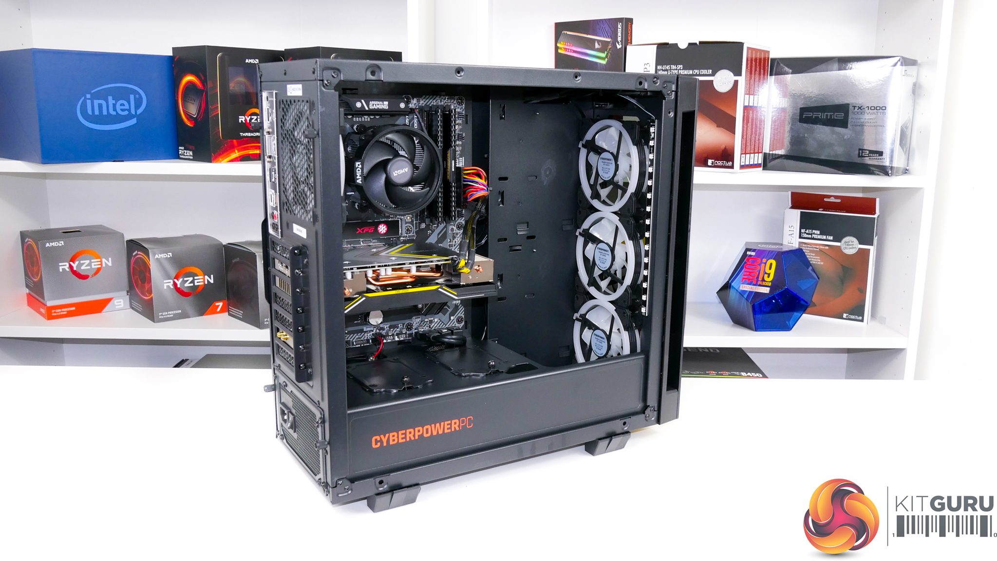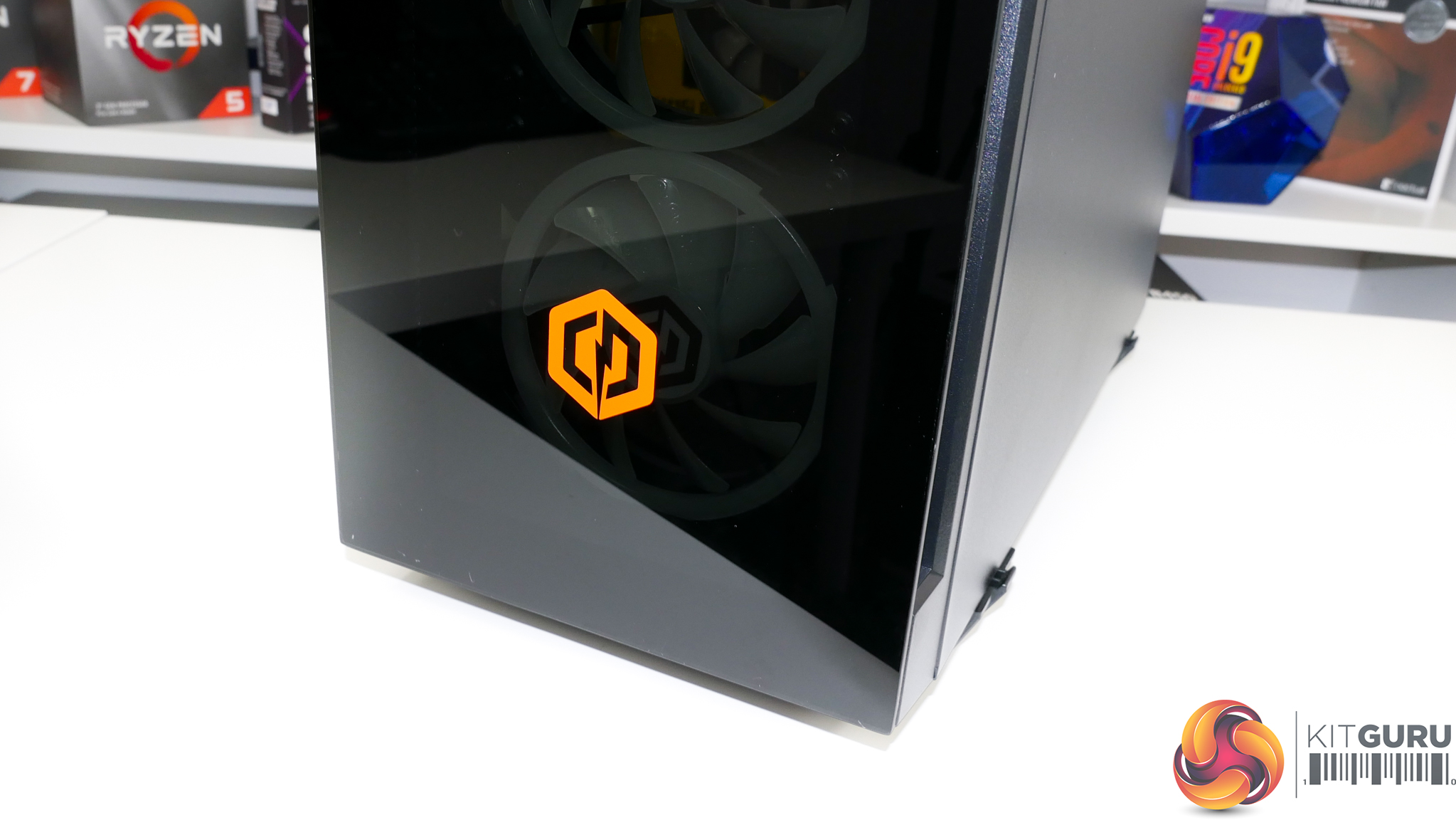 Focussing first on the chassis, Cyberpower uses the Onyxia 2.0 Black tempered glass unit. This budget mid-tower case features a tempered glass front panel and side panel and houses three 120mm intake fans in the front.