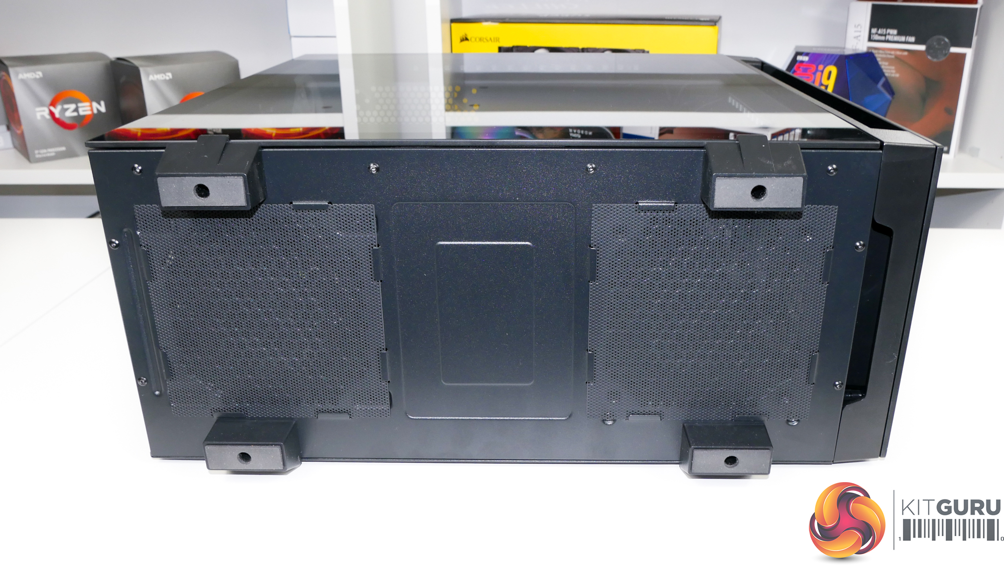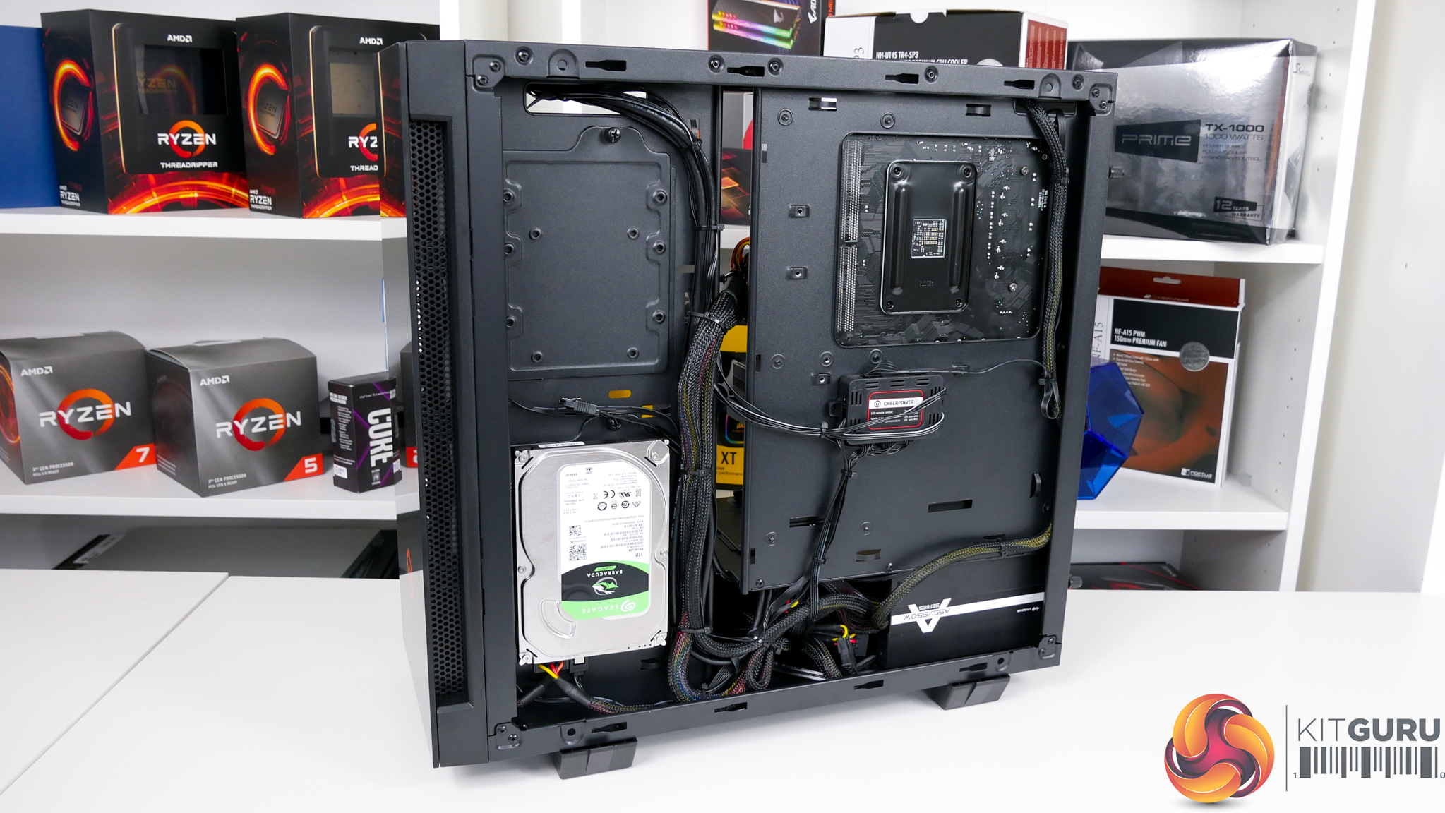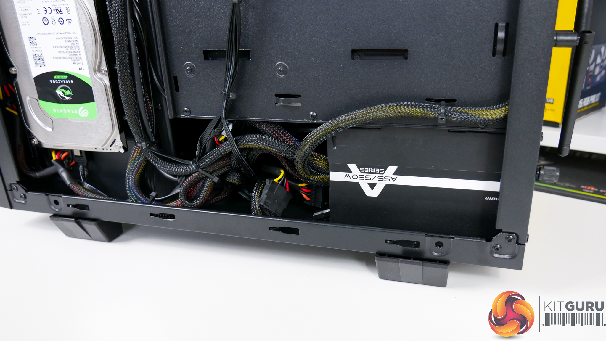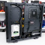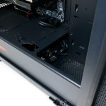 A pair of 2.5” SSD trays sits beneath the motherboard. These trays are conveniently located for upgraders who want a quick and easy drop-in upgrade. A power supply shroud conveniently hides undesirable cable clutter and the overall design from a cable management perspective is clearly positive.